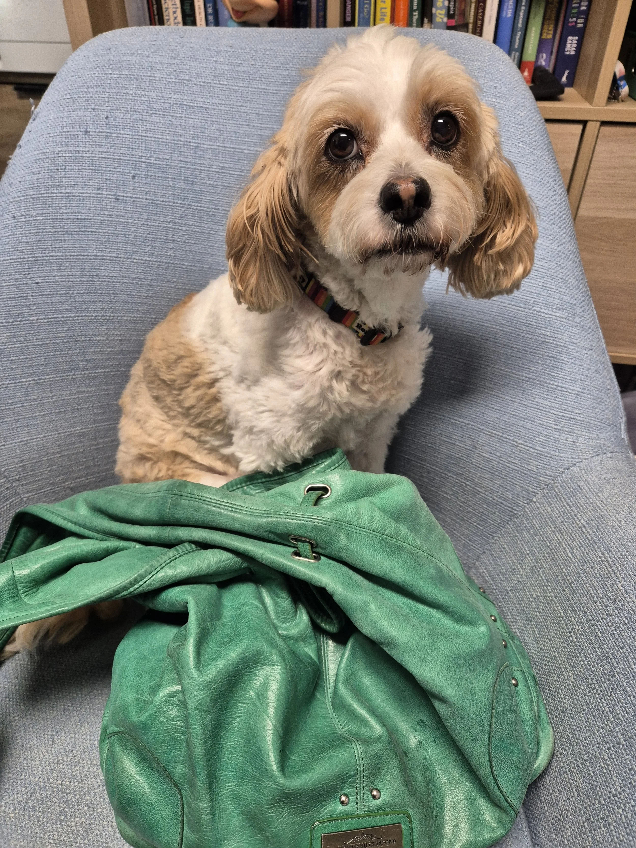 The moment Rory and I met, though, it felt like fate. She approached me enthusiastically, her tail wagging happily. But then, she headed straight off to explore the rest of the space—and hopped right into my oversized green handbag as if she’d found her place in the world. Right then, I knew—Rory was a fellow bag addict and was obviously meant to be part of our family.