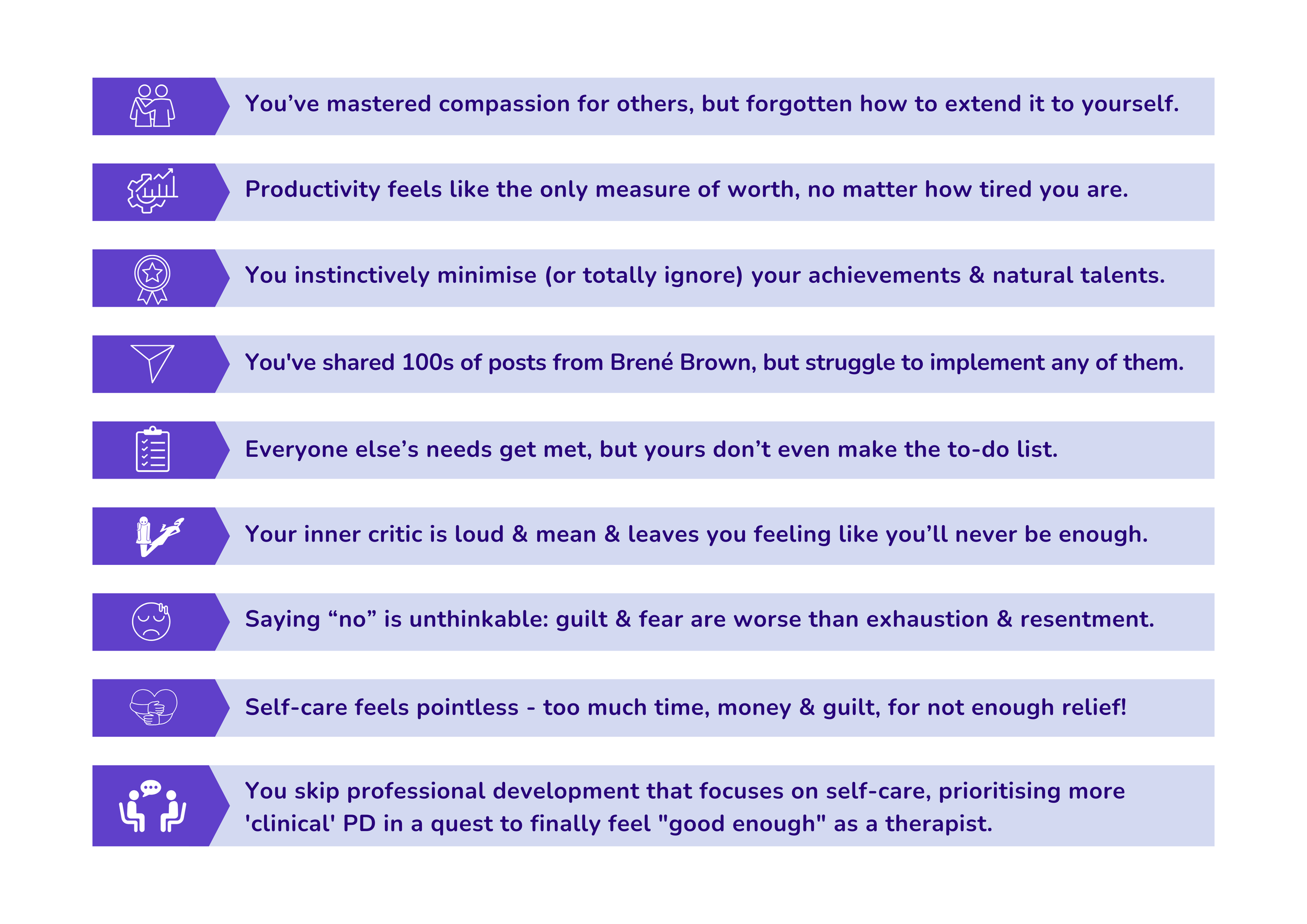 That’s why I created SPARKS. It’s the framework I wish I’d had from the start - an approach that goes beyond quick fixes to help us heal, grow, and thrive as therapists and individuals. With SPARKS, you’ll gain tools to stop running on empty and finally feel like you’re doing enough for both yourself and others.
